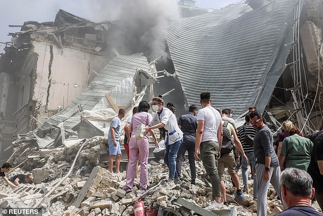 Children's hospital is blown up in 'genocidal' missile strike on Kyiv that left seven dead across Ukraine's capital - with youngsters feared buried beneath the rubble