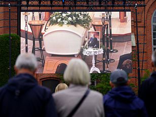 Residents along the route were seen gathering on their lawns and at the end of closed-off streets to pay their respects - with songs played including The Bare Necessities from The Jungle Book.