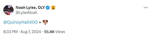 Lyles who won gold in the 100m final on Sunday took to the social media platform 'X' to state that his compatriot was a certified DAWG.