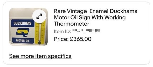 I sell vintage signs and other interesting items online. In May this year,a buyer purchased a rare enamel Duckhams motor oil sign with a working thermometer attached for £365.