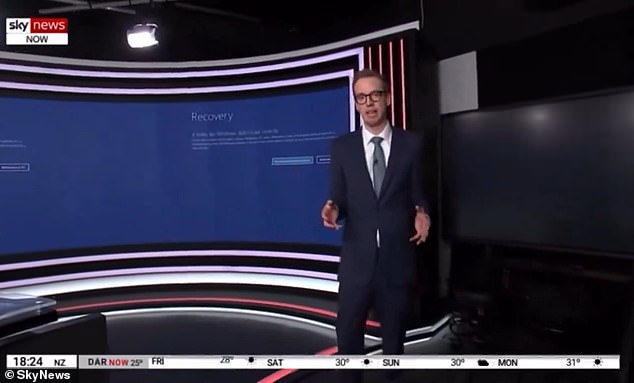 Sky then started playing a pre-recorded message from reporter Tom Connell,standing in front of a blue error screen.