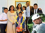 Golf star Tony Finau confronted by protesters demanding $42m PGA Tour player 'pay his debts' and 'pay his family back'... with one claiming he is owed more than $600,000