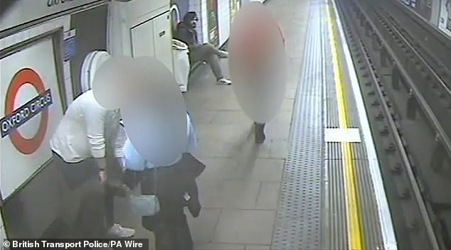 Brave commuter Oliver Matthews came to his rescue and pulled him back up to the platform.