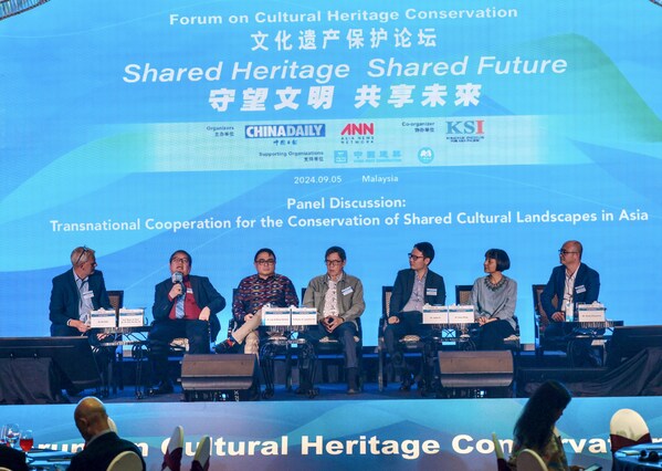 Panel speakers discuss at the Panel Discussion: Transnational Cooperation for the Conservation of Shared Cultural Landscapes in Asia during the forum on Cultural Heritage Conservation "Shared Heritage,Shared Future" at Hilton Petaling Jaya Hotel,Selangor,Malaysia on Sep 5,2024. Andy Chong / China Daily