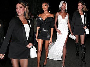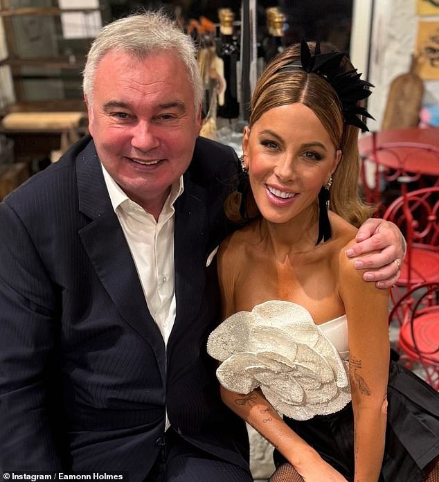 In the image,Eamonn,who recently returned from a holiday with his new partner Katie Alexander,posed with arm around Katie,with the Resident Evil star dressed in a fun black and white mini dress.