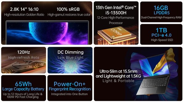At just 15.5mm thick and 1.5KG,this ultrabook is incredibly lightweight and easy to carry around. It's perfect for professionals on the go who need a powerful yet portable solution. The 65Wh large capacity battery ensures long-lasting performance,so users can stay productive throughout the day.